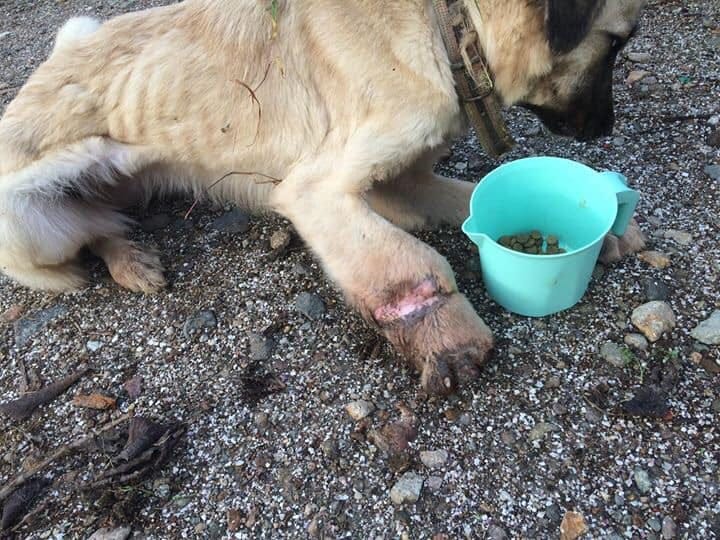 She was frail, her body underweight, and her fur matted with dirt. The most concerning one leg, which bore a terrible injury. The paw was missing, it was broken & swollen. Most likely infected.