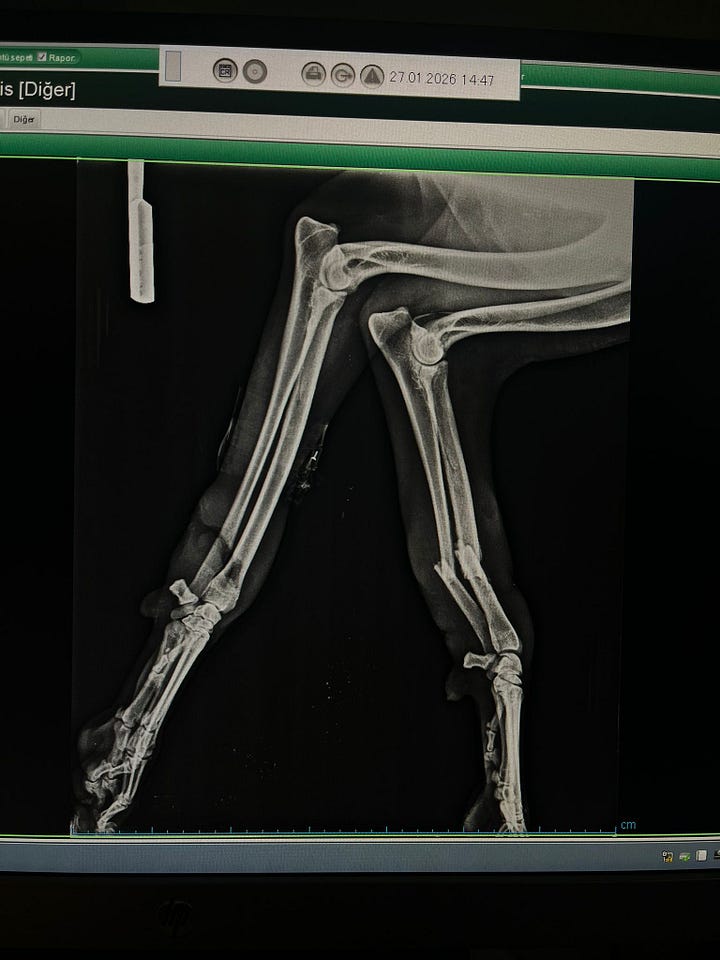 There’s also something we always try to be open about with complex fractures like this: there are no guarantees. Even with a plate and an external fixator perfectly placed, healing isn’t something we can force it still depends on Atış’s body doing the work.