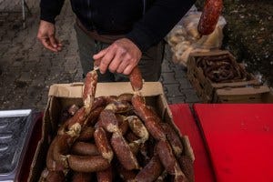 Pretty much every part of the camel is used, there is nothing wasted. Camel sausages are sold at the fighting festivals & are a popular snack with spectators.