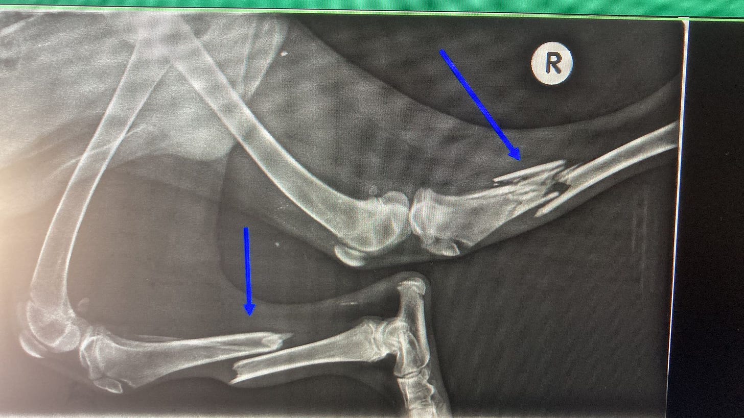 As you can see from the x-rays poor Patch had multiple breaks affecting three of his legs. He must have been in such a great amount of pain & so stressed.