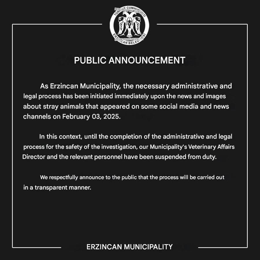 Erzincan Municipality, who had previously denied any involvement in these events made a statement to the public several days later in which they announced the suspension of staff pending investigation.
