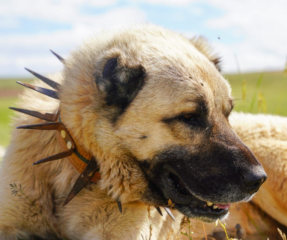 You may have seen pictures of these guarding breeds wearing spiked collars, similar to the one in the picture above. The shepherd uses this awful contraption not to cause damage to the predator but to protect the dog's throat.