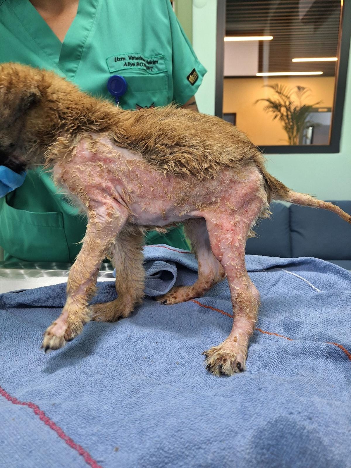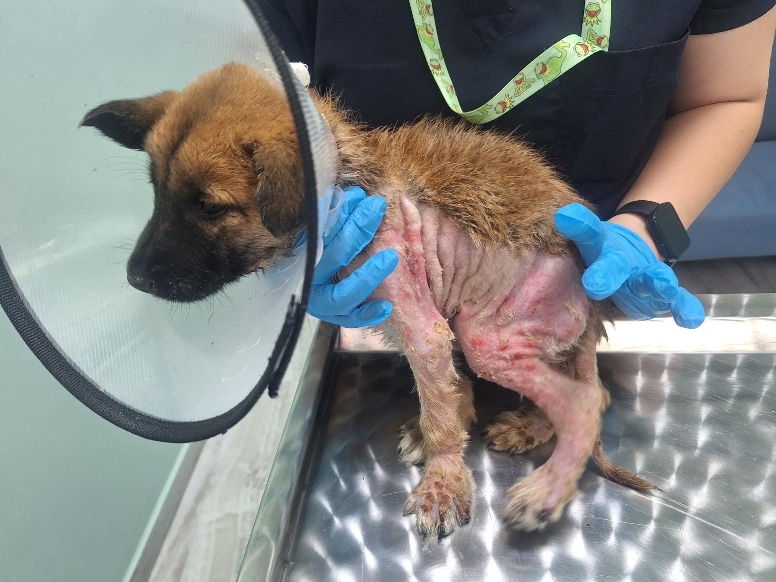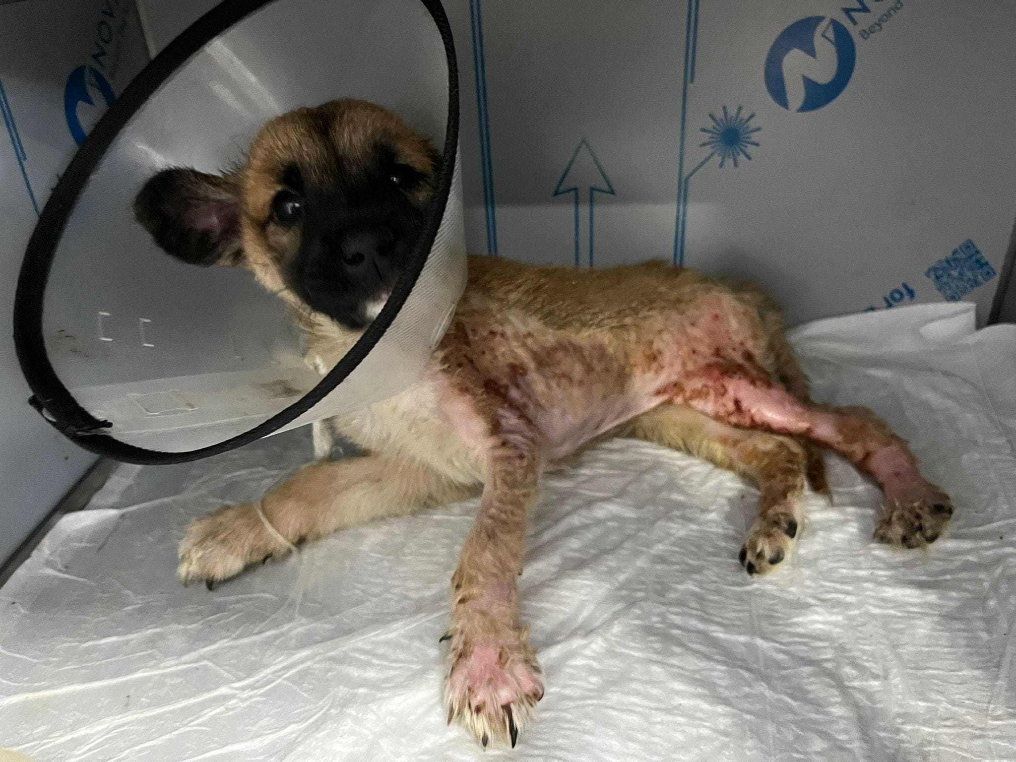 She was taken to a local veterinary clinic, who let her down badly. The vet prepared to discharge her without proper treatment, all they gave her was some cream for the burns that were visible, where her fur had been burnt off.