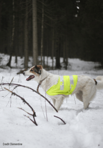 Keep your dog on a lead when near rivers, canals and ponds. Frozen stretches of water may look safe to walk on but often they are not. Staying visible is as important as ever. not just at night but during the day when visibility is reduced. Our model Ella, above is showing us her high vis jacket. An important part of her wardrobe. This is especially important because she is white and blends in well with the snow.