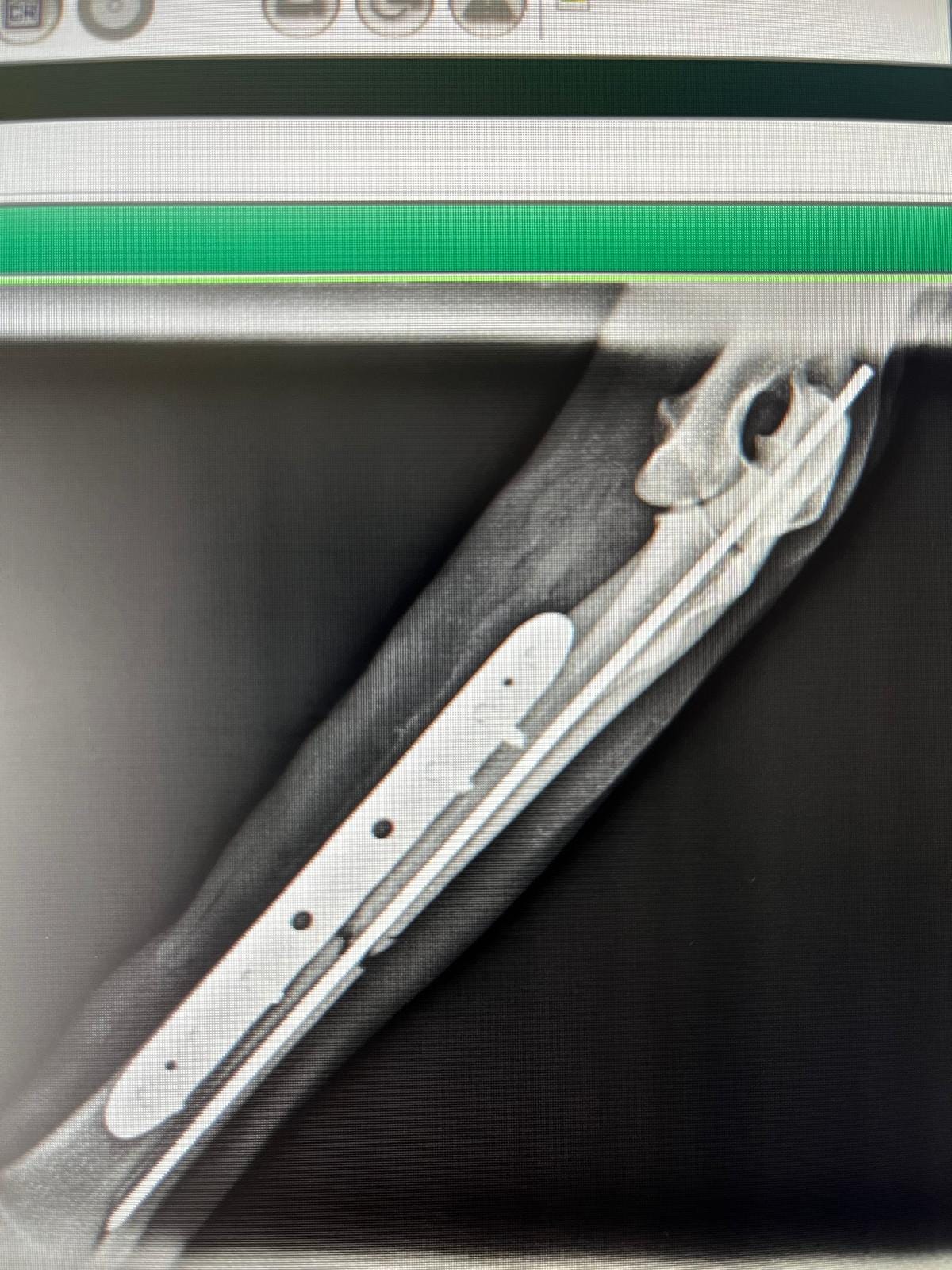 Apollo was examined & found to have a nasty break in his forearm which needed to be repaired by osteosynthesis, a surgical procedure which joins broken bones back together with plates.