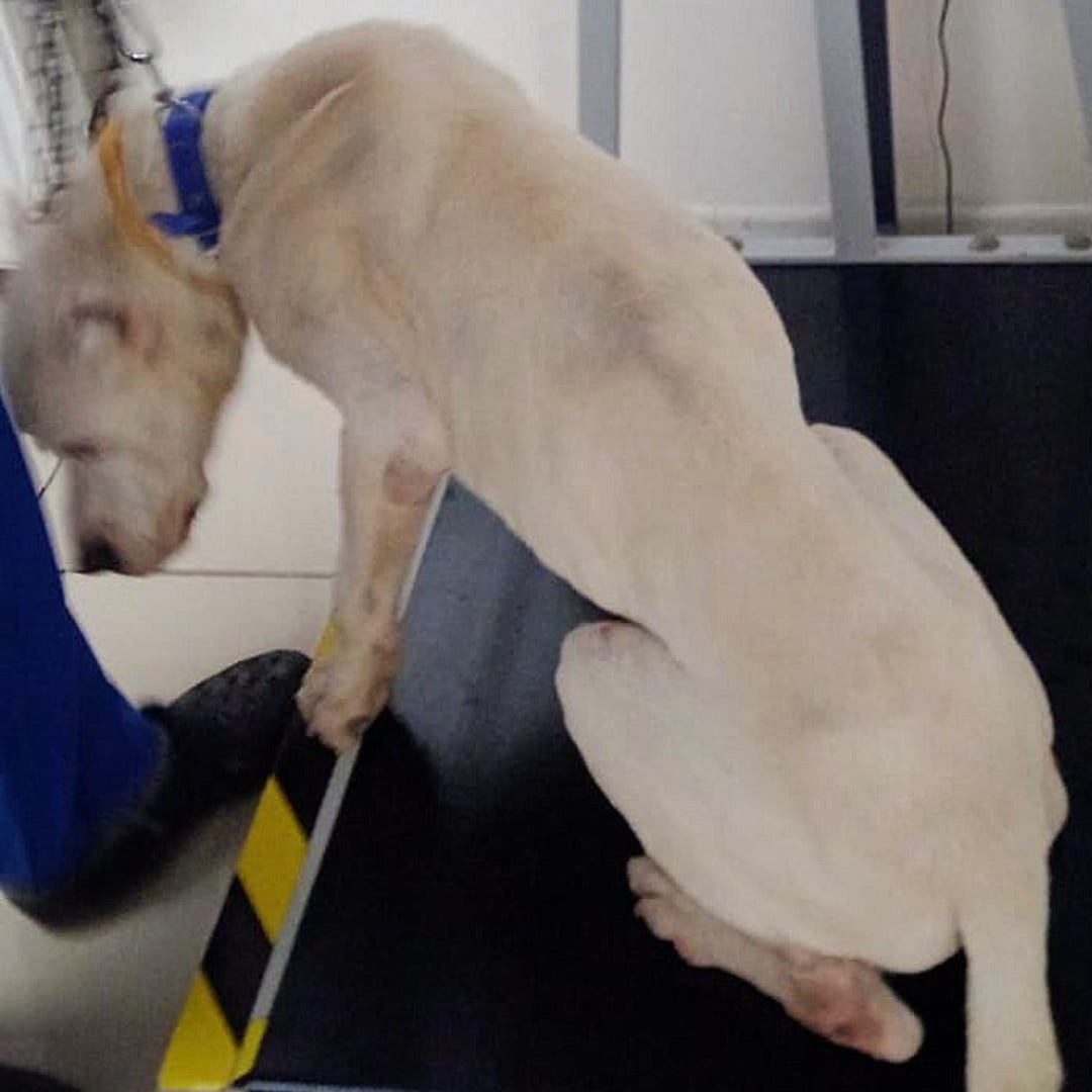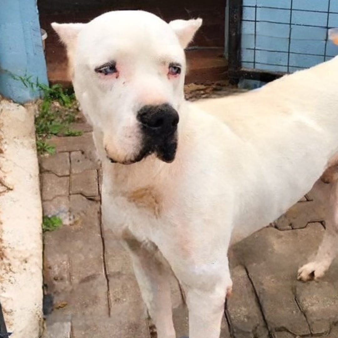 Zac, a Dogo Argentino, was abandoned and left to wander the streets in distress.