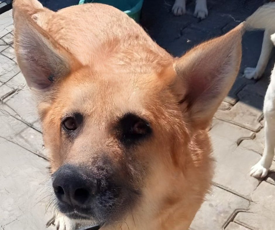 He remained alone in the kennel for a few days to become familiar with the shelter & then, as she always does, she started introducing friendly dogs with very placid natures to him.