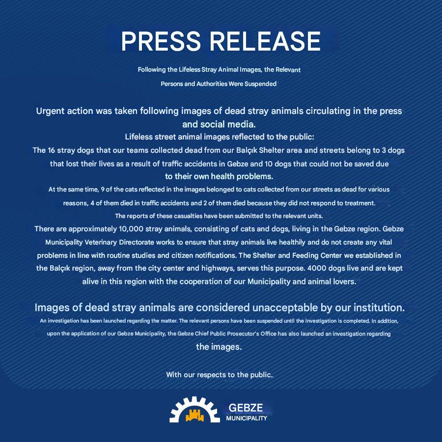 Gebze Municipality issued a statement very promptly stating that they had taken urgent action.