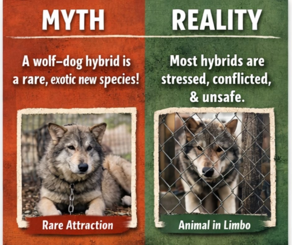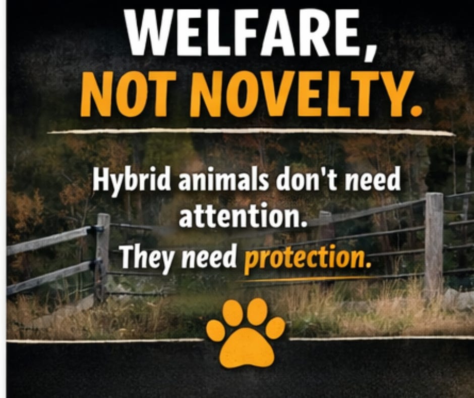 it encourages people to seek or even recreate them. We’ve seen this pattern before with wolfdogs, exotic crosses, and designer animals. It starts with fascination. It ends with abandonment.