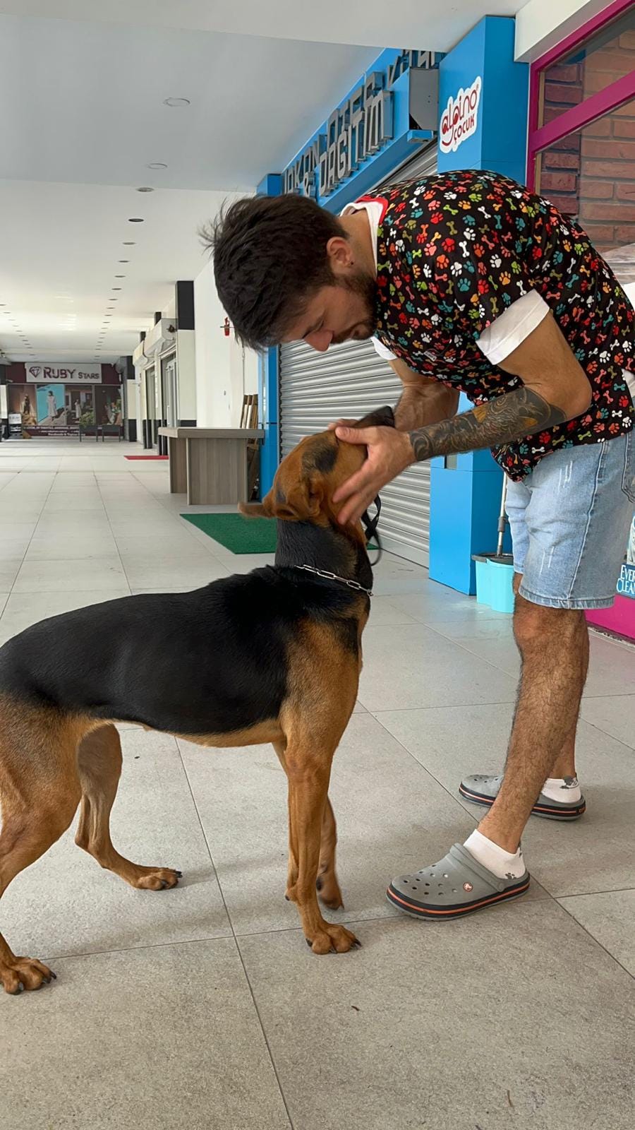 After she was given some food, the next essential step was a visit to the pet shop to get a lead. In a quick fix, her rescuer tied a scarf around her neck to ensure her safety.
